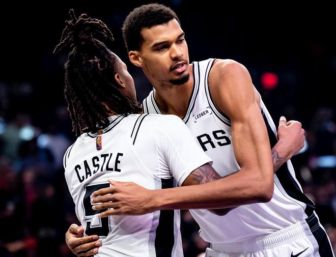 从某种意义上讲,马刺队能从死亡之组脱颖而出已经是了不起的成就,他们将掘金、火箭挡在淘汰赛大门之外也在无形之中改写了本届NBA杯争冠格局。到了淘汰赛,马刺队更加残暴!8进4面对湖人,文班亚马延迟复出,卡斯尔和福克斯合砍50分+14篮板+9助攻,打爆东契奇、老詹和里夫斯三巨头,马刺队132-119爆冷淘汰湖人队;半决赛面对雷霆队,后者正处于16连胜之中,文班亚马复出后生涯首次替补出战,马刺队4人砍下20+,在落后16分的情况下完成绝地大反击,2分险胜终结雷霆的16连胜,昂首挺进NBA杯决赛。
