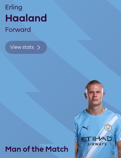- 梅开二度,哈兰德当选水晶宫vs曼城全场最佳球员