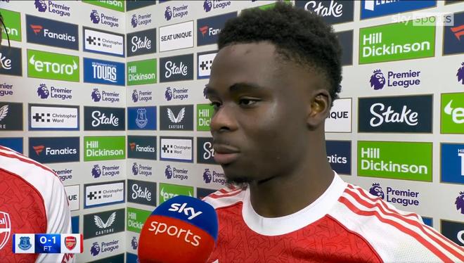 北京时间12月21日,英超第17轮,埃弗顿0-1阿森纳。赛后,阿森纳球员萨卡接受了采访。